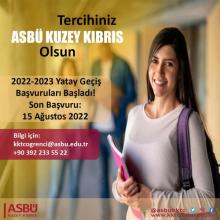 Tercihiniz ASBÜ Kuzey Kıbrıs olsun! 2022-2023 Yatay Geçiş Başvuruları için son gün 15 Ağustos 2022 Bilgi için: https://kktc.asbu.edu.tr/.../asbu-kuzey-kibris-yerleskesi...